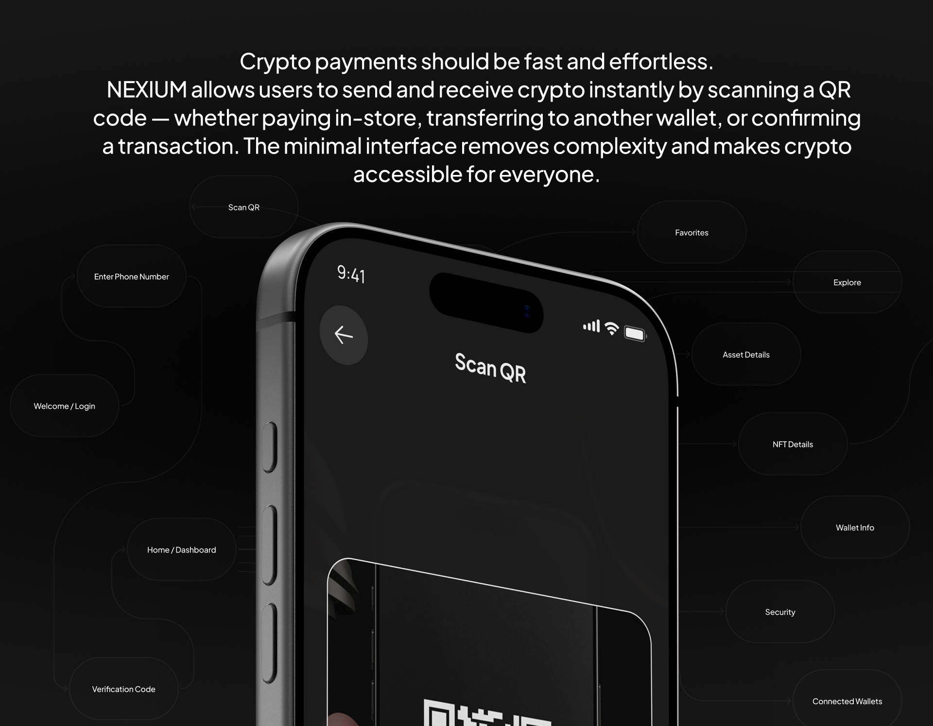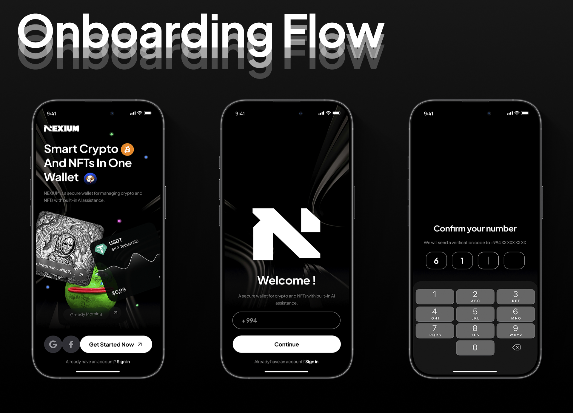 NEXIUM is a crypto and NFT mobile app designed for seamless asset management, trading, and P2P transactions. The project focused on creating a clean, intuitive interface with structured user flows and a strong visual identity to simplify complex financial interactions and enhance user experience.